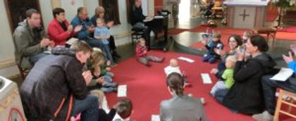 Seit nun mehr 18 Jahren findet jeden 1. Sonntag im Monat ein Kleinkindergottes-dienst in St. Nikolaus Veen statt. Damals wollten junge Mütter ihren Kindern einen ersten Zugang zum Gotteshaus und eine besondere Gemeinschaft vermitteln. Seitdem treffen sich regelmäßig Kinder im Alter zwischen 0 und 7 Jahren mit ihren Eltern und Großeltern auf unserem roten Teppich im Chorraum unserer Kirche, um gemeinsam zu singen, zu beten und spielerisch von Jesus und Gott zu hören (und natürlich auch zum Krabbeln!).